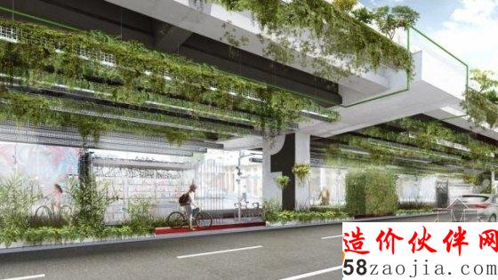 规划非常简单,就是利用性强健,耐光性能好,低维护的热带植物品种优化环境,降低二氧化碳污染。具体的措施是在高架桥的桥墩下,桥墩上,和路面侧部和下部都布置植物,这些植物主要利用新设计的雨水收集系统收集的雨水而成活。除此之外景观设计师还在人气高的区域放置了绿色的服务亭,为市民提供文化,饮食,商店等各种功能的服务。