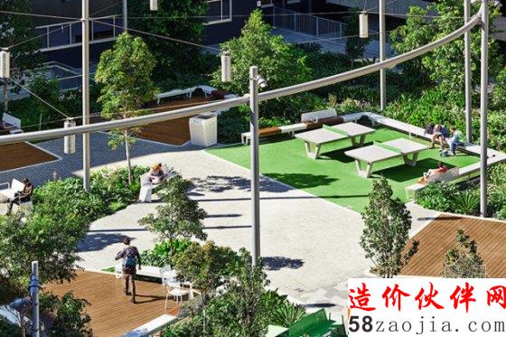 惬意花园是一个美丽的小聚会空间,种有郁郁葱葱的植物,为一系列相连的休憩场地提供了林荫遮蔽。每个休憩场地都设有各类便利设施,如桌子、可移动座椅、笔记本的电源插座、烧烤设备以及乒乓球桌。