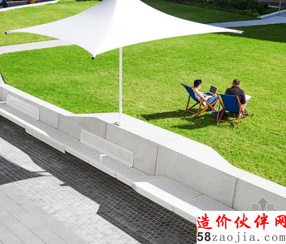 悉尼科技大学校园绿地是悉尼科技大学市中校区最为重要的公共开放空间。悉尼科技大学因其二十世纪六十年代的“野兽派风格”高楼而闻名,而高楼也是校园的核心建筑之一,但在这里,学生在绿色景观空间学习及社交的机会却较为有限。全新的绿化空间提供了一次社交、学习及充分享受校园生活的独特体验机会。本项目的设计提供了各类社交设施,创造多种吸引人们聚集于此的机会,从而打造具有幸福感的场所。