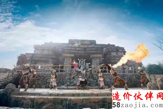 离火殿:火神决战魔幻演出火神祝融与水神共工之间的一场惊世大战,剧场预演区面积250平方米,主演厅面积540平方米。