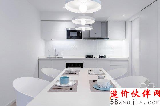 纯白的空间里看上去没有一点复杂的装饰,实用性却面面俱到。利用空间的错位设计得来的储存空间很好的满足了使用者需求,洗衣房的设计也规避了没有阳台户型的尴尬。
