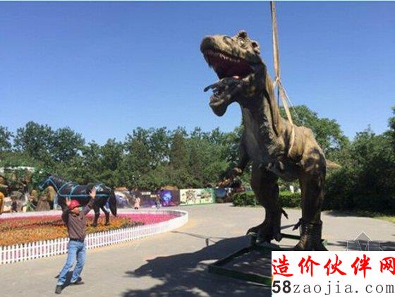 记者在现场看到,园区内布展了15米的霸王龙、25米的梁龙、20米的腕龙、还有水龙、脊背龙等20余种机械恐龙。恐龙内部设有高科技的机械设备和感应器材,当人靠近时恐龙会发出叫声,摇头摆尾,甚至眨眼睛等动作,可以更直观、更形象的让游客了解恐龙,还原远古的恐龙时代风貌。