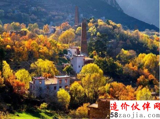 走进丹巴,抬头望去,阳光流金般灿烂,云天纯净而又热烈,清澈的江水流过开满野花的草地,风中送着自然的气息,高耸的古碉凌空挺拔,低头环顾,绿茵田野间的藏房与巍峨的古碉相映成趣。