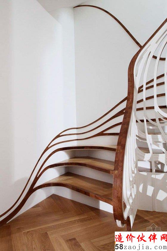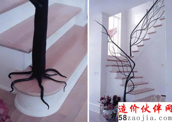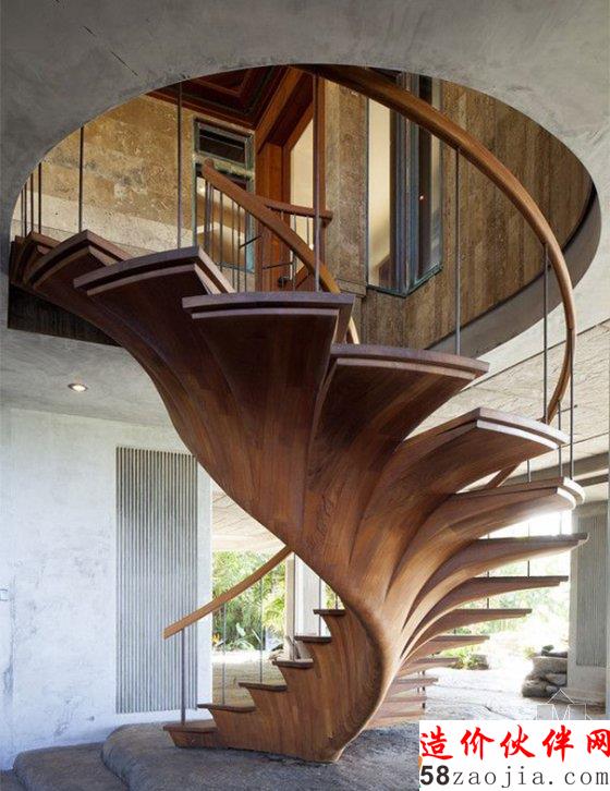 强烈吸引着我们的不止是这些设计的风格和流派,优雅与优美,独特与个性化,它的可爱之处还在于这是世界的聚合,材质良好的木材和其他稀有材料一起构成财产以外的生活和温暖。我们必须承认用树桩做楼梯端柱,树枝做扶手很牵强,但添加一些独特性格的想法进原本乏味的空间的人是天才。有时候我们看到孩子们从楼梯上滑上滑下内心是嫉妒的(假定他们是孩子)你经常可以在家里听到“到楼下追你”这样的词。