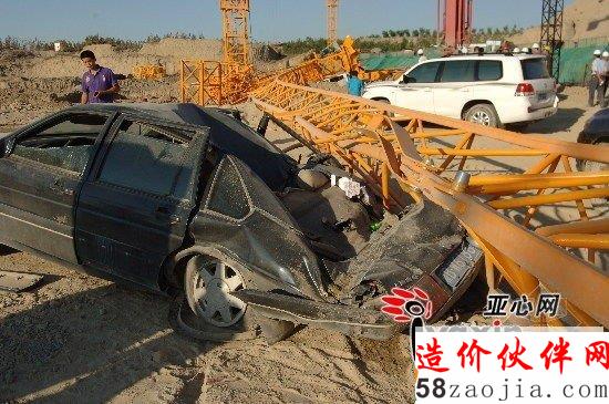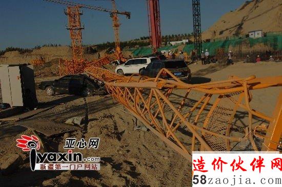 据现场一位社区工作人员介绍,此工地为保障房建设项目,施工方新疆裕顺公司从山东购买了新塔吊,在安装过程中,高29米的塔吊突然发生扭曲,随即从中间轰然倒塌。事发时,塔吊上有五名工人,其中操作室里的胡先生和一名工人位于倒塌钢架上。“那名工人紧紧抓住钢架,加上倒塌的塔吊被一辆施工车支撑住,他仅手部受了轻伤,已被送往医院,而胡先生基本没受伤。”工作人员说。