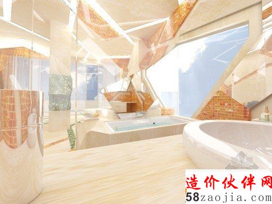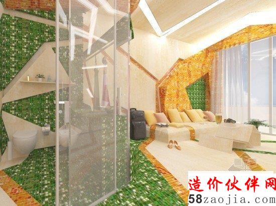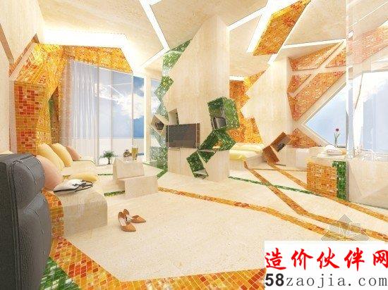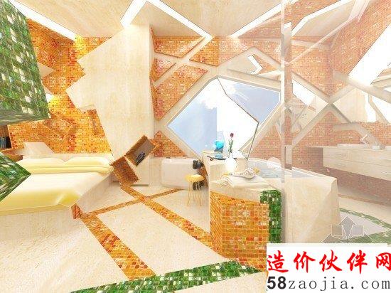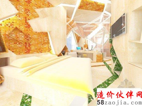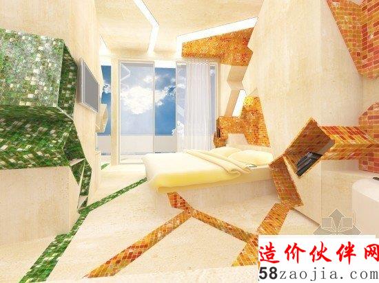 Gemelli Design Studio完成了一家酒店的室内设计,在In The Painting室内设计方案中,基本运用的设计手法就是转换,墙壁天花板的相互分割、转换是整个空间看起来犹如雕塑一般,配上豪华的瓷砖使得房间显得奇怪且令人兴奋。