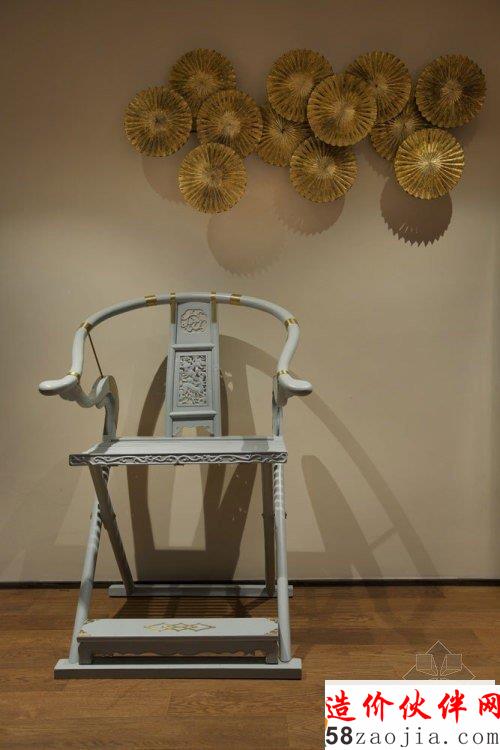 除了保留原有的能够被保留下的,更多的仿古装饰被装点进了这个空间以切合整体的环境。灵感来源于中式手提食盒的各类柜子,竹子形状为支柱的中式大床,古式的门把,卫浴间门上的雕花铜片,镶在墙上的民族项链,各式的中国瓷器花瓶,亮色的交椅 , 墙上用各色毛笔笔刷高低错落的排列作为装饰 。。。。