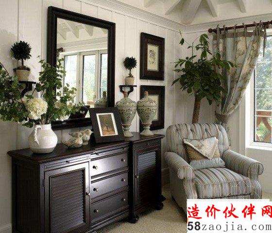 这座美式乡村风格的住宅突出了生活的舒适和自由。绿色、土褐色、白色的色彩风格非常自然,散发出浓郁泥土芬芳的色彩。