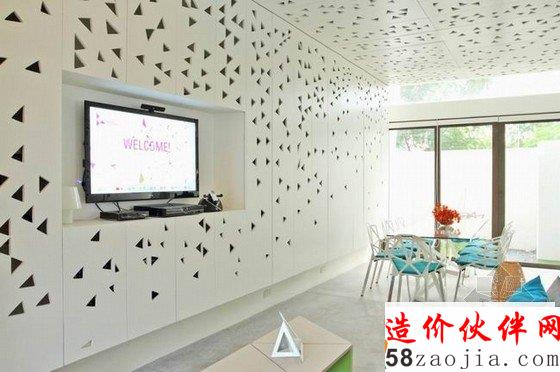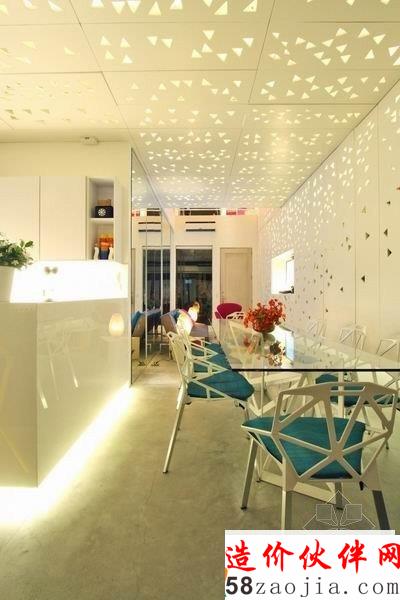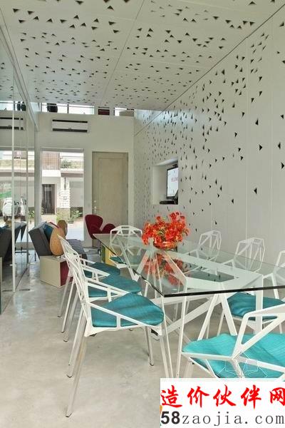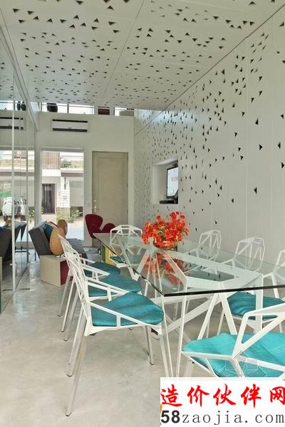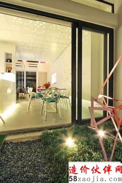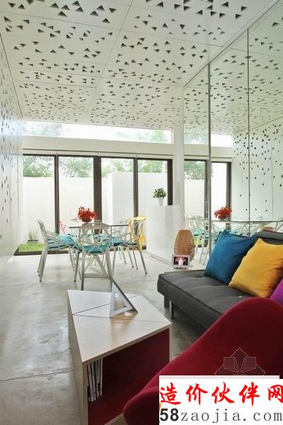 这座位于菲律宾的 Townhouse 是由 Buensalido 设计的。设计师创新的设计概念非常的独特。灯光通过镂空的墙壁,形成了千变万化的图案阴影,营造了一种非常奇妙的氛围。室内空间里,运用多种丰富明亮的色彩,清新自然,舒适温馨。