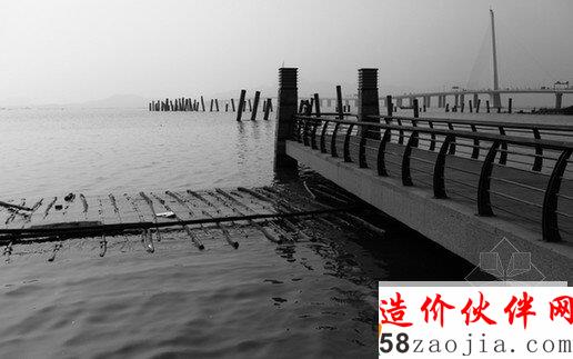 记者在现场工地的工程概况表上看到,该工程开工时间是2011年12月5日,竣工时间是2012年12月4日,工期一年,工程造价4799.24万元,计划在海面上建设两座观海桥和一座码头,而责任单位是市建筑工务署。
