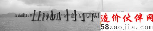 昨天下午,记者赶往此工程施工现场,现场无数巨大的水泥柱矗立在深圳湾大桥旁海里,醒目而怪异,一片杂乱。