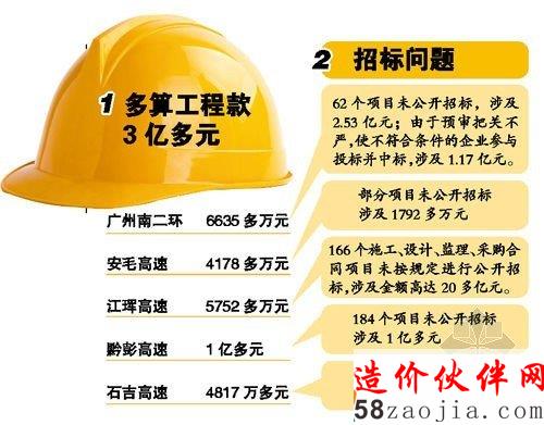 2010年12月建成通车的同江至三亚高速公路广州绕城公路南段(以下简称广州南二环高速)也被审计查出多项资金问题。