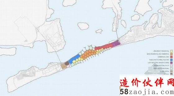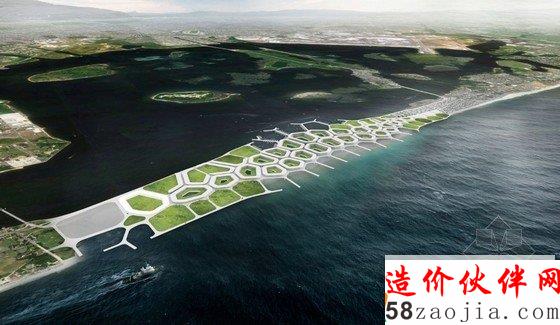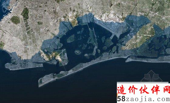 项目的规模和涉及的范围超出了事先的期待。但你可以想象,一座可持续性的海滨城市处于气候不断变化、地面景观持续变更的时代,会是一种什么样的情形。海平面在不断上升,解决这一问题的方案不应该只考虑到未来30到50年的情况,而要延伸至200甚至是300年后,那时洛克威半岛极可能已葬身海底了。为了保留滨海地区的社区氛围,该基础设施系统在沿沙滩地带加入了大量的木板人行道和水上平台,使周围的气氛活跃起来,而且在将来还可能代替沙滩成为新的滨水区。住宅大厦是由100个单元组成,均面朝一座庭院。庭院除了在紧急情况下作为一个安全的集合场所,还可以用于耕作、园艺、娱乐、公共活动等。能源的利用是该项目中最关键的元素。建筑充分利用大自然的日常循环活动,如水潮、日光和高风速等,作为所需能源的动力,创造了一个自给自足型的社区。