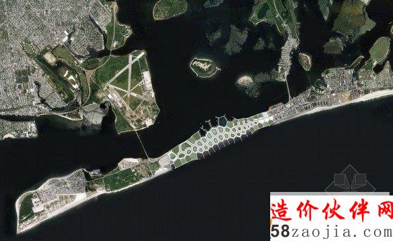 建筑形态呈一个变形的方格状,这一构造使建筑不仅具备了挡风挡水的功能,还能够将过往的风能和水能储存备用。城市就这样与这片由具备不同功能的大楼组成的基础设施网络连接在一起。2012年10月,飓风“桑迪”席卷纽约市及周边地区,夺走了72人的生命,毁坏了上千座房屋,上百万人失去了电力供应。其中洛克威半岛便是在这次飓风中受到最大影响的地区之一。为了使关于灾后城市重建的讨论更具创意,纽约现代艺术博物馆PS1和纽约现代艺术博物馆建筑与设计部门发起了关于“建设一个可持续的滨水区”的意见征集活动。艺术家、建筑师、设计师和其他任何人都可以来献计献策。意见内容涉及多个方面,包括可替代住房模式、社会空间的创造、城市干预、对公共空间的新利用、木板人行道的改建、海岸线的防护工程以及让当地居民能够参与进来的活动。