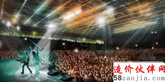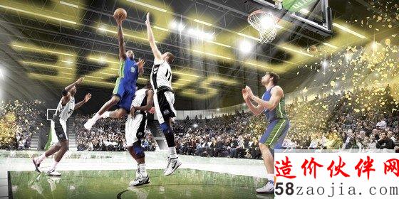 项目预计在2014年底完工,能够容纳2,500到4,000人参加不同类型的活动。建筑的位置对于建筑设计有着主要的影响:紧凑的建筑体量是原有体育馆延续,从而可以利用紧邻的建筑结构。这样使得面对住宅区的开放空间变成了绿色的城市公园,包括一个街头篮球场、操场和娱乐设施区域。建筑基本的体量被表面由不同高度所形成的起伏的表皮所柔化,这些高度由室内的不同功能所决定,而外部由穿孔铝合金面板所包裹。因此,建筑庞大的体量被弱化,并向公园逐渐过渡。设计主要关注将环境和社区精神相整合,伴随有效的功能和逻辑性产生一个新的文化聚集区。建筑兼具开放性和内向性,在容纳观众参与活动的同时,可将紧邻的公园纳入活动举办区域。由门厅可进入场馆中心,中心区域的地坪被降低到地坪以下。而建筑碗状的造型和倾斜的看台为各项活动营造了热烈的气氛,使观众同时感受到个人和集体的心情。建筑包括一系列不同的使用功能,能够根据不同类型和规模的活动调节。此外,方案中提出了通过将场馆的屋顶设计成一个巨大的LED屏幕,使其整合成全场观众都能看到的部分。