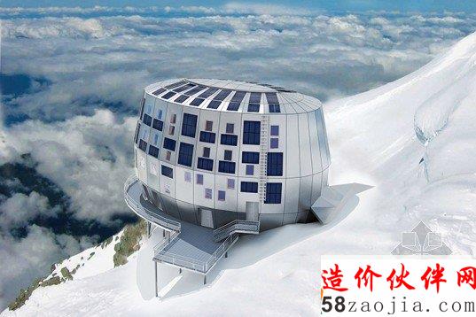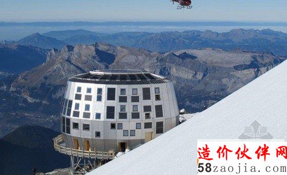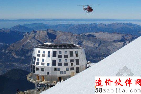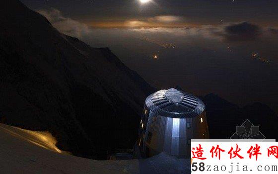 摘要:由Thomas Buchi 和 Thomas Buchi设计的阿尔卑斯山脉朗峰之巅的旅馆近日将正式开放。据悉,阿尔卑斯山脉最高峰朗峰建起了一座号称全法国地理位置最高的建筑。这座位于海拔 12582 英尺高峰上的、极富太空“韵味”造型的建筑,实则是一间旅馆,专为登山运动员、登山爱好者提供安全、舒适的住宿环境。