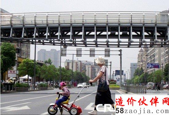 2013年5月28日,江苏南京,首座电梯天桥与附近路面斑马线相距仅约8米远。