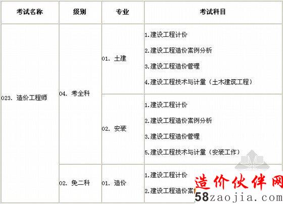 造价工程师执业资格考试设:《建设工程造价管理》、《建设工程计价》、《建设工程技术与计量》(本科目分“土木建筑工程”与“安装工程”2个子专业,考生可根据工作实际选报其一)、《建设工程造价案例分析》4个科目。