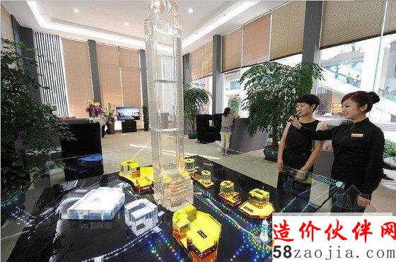 参观者在重庆环球金融中心售楼处观看大楼模型