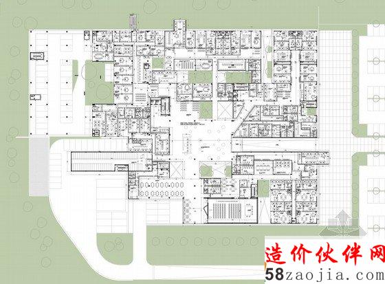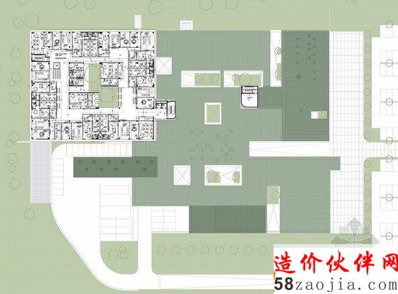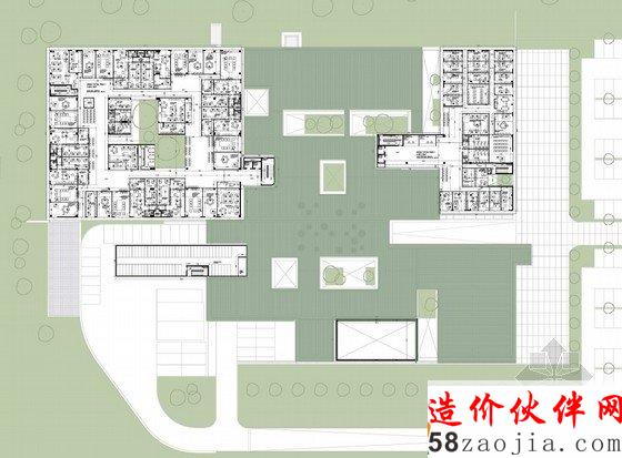 建筑理念的支柱是功能性、耐用性和可持续性。在体积方面,垂直面和水平面一同对法院建筑的需要进行了回应。民法法庭对面积有着最大的需求,所以占据了四层楼,而一些区域只占用一层楼。这一空间关系使我们觉得这就是我们要寻找的建筑。预留的空间在空的和充满的部分之间增强了这样的感觉。建筑物的中心轴削减了主要用户在体积上的中心位置。建筑的核心是引导每个用户到服务中心,通过广泛的绿色区域,出现在天井周边。这个想法是让我们的头脑里有这样的一个观念,就是让一个低成本的建筑在使用条款和维护的过程中,选择可持续的材料,在项目开发中这是一个重要的策略。整个建筑被认为是节约能源和保护用户免受天气状况的。建筑物实现的是可持续发展战略,但其他技术,如绿色屋顶,光伏电池板、太阳能电池板和雨水再利用都可以一起工作来实现我们的最终目标。