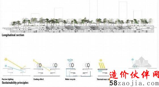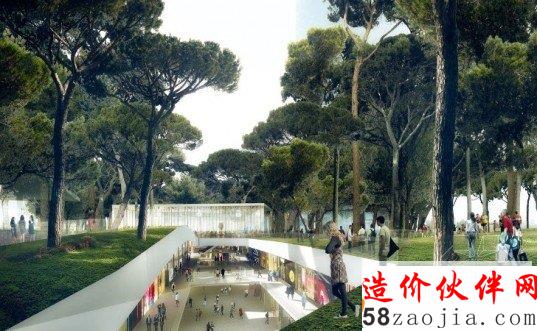 摘要:认为所有购物中心都应该在地下,在地下购物中心之上有一个郁郁葱葱的公共公园。在巴塞罗那,购物中心的设计是为了给建筑物提供一些急需的零件及住宅组件。从图可以看出,路人和居民只能看到一片森林,但隐藏在森林下面是一个网状的节能商业空间。