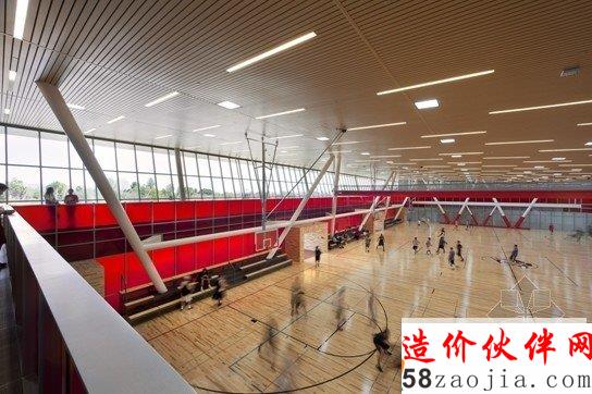 学生娱乐中心在战略上通过提供一个动态和充满活力的方式创建了一个强大完美的东校区。设计概念中显然明智的运用了颜色和光元素。当进入到这座建筑的时候,自然柔和的光线和精心选择的建筑材料都会提升人们的兴奋度,起到激励的作用。作为一个美学建筑,它捕获了不同运动活动中的能量和动力。建筑内部清晰的透明度使得建筑有很强大的吸引力。同时这座建筑的社区联系是非常紧密的。收集自然雨水,采用自然通风,和天顶照明等设计都将可持续发展的理念很好的融入这座建筑中。