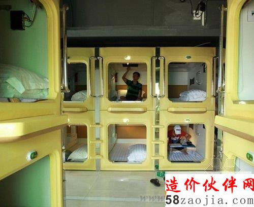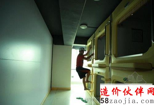 一张宽1米的床铺、壁挂式液晶电视、梳妆台、折叠式电脑桌……这就是一个“太空舱”胶囊公寓内的配置。每个“太空舱”内长为2米、宽1米、高1.2米,普通身高的人住在里面十分宽松,每个太空舱只能入住一个旅客。每个“太空舱”的造价及运费大约在1万元左右。