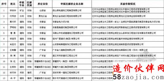 弄虚作假申报一级建造师注册人员名单