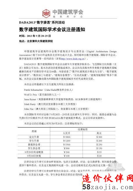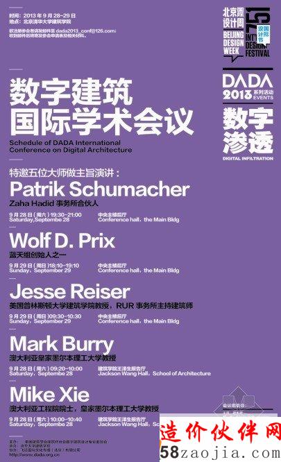 摘要:金秋9月DADA2013数字建筑设计国际会议将在清华建筑学院召开。国内外数字建筑专家齐聚北京,共探数字设计未来。Patrik Schumacher、Jesse Reiser、Wolf D. Prix、Mark Burry大师讲座与您相约。更有DADA数字建筑展将于751D·PARK北京时尚设计广场开幕,敬请关注。详情请见海报。