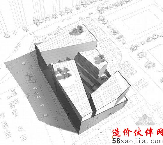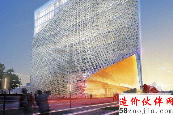 建筑物是一个立方体,这个立方体被透明金属网和彩色玻璃罩着,随着自然光线的变化,而变得五彩斑斓。这样的彩色玻璃设计使得周围的建筑都显得特别有活力和生气了。建筑一共由三个写字楼构成,三个写字楼高度都不一样,其中,最高的有11层。中庭休息区设在建筑一层的角落,从远处看,整个建筑就像是被抠出了一部分。这个中庭是供游客休息和工作人员办公的。
