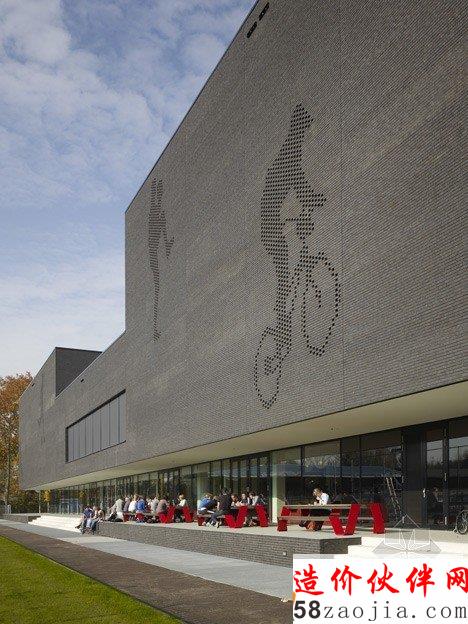 摘要:Mecanoo建筑设计师为荷兰设计了一所方提斯体育学校,体育学院整体是黑砖外观,上面有正在做各种运动的运动员图像。方提斯应用科学大学理事会委托建设这样一所体育学校。学校拥有16500平方米的体育场馆,于2012年10月25日开馆。