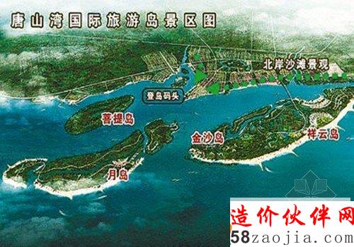 位于唐山市东南部乐亭县境内的唐山湾国际旅游岛,其建设根植于河北省建设沿海经济隆起带规划之上,由菩提岛、月岛和祥云岛三个岛屿及北侧陆域构成,总规划面积100 平方公里。2009年6月,唐山湾国际旅游岛开发建设指挥部成立,确立了包括民俗文化、游艇别墅、养生养老、温泉、高尔夫等九大国际品牌的发展目标。