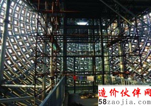 这只“河豚”身上使用最多的材料是钢。“主要靠钢构件、杆件支撑整个建筑。”负责钢结构制造的南通中汇重工有限公司工程质量技术部项目经理陈玉章表示,差不多用了1700吨钢,具体的造价则不太清楚。记者同样查询了9月25日上海钢材市场的最新行情,角钢、槽钢、工字钢、镀锌钢管的平均价格为每吨4000元左右。测算下来,钢材的总价约为680万元。