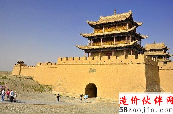 嘉峪关关城始建于明洪武五年(1372年),从初建到筑成一座完整的关隘,经历了168年(1372-1539年)的时间,是明代长城沿线九镇所辖千余个关隘中最雄险的一座,至今保存完好。1961年3月,被国务院列为全国第一批重点文物保护单位。因地势险要,建筑雄伟而得有“天下雄关”、“连陲锁阴”之称。嘉峪关由内城、外城、城壕三道防线成重叠并守之势,壁垒森严,与长城连为一体,形成五里一燧,十里一墩,三十里一堡,一百里一城的军事防御体系。关城以内城为主,周长640米,面积2.5万平方米,城高10.7米,以黄土夯筑而成,西侧以砖包墙,雄伟坚固。整个建筑布局精巧,气势雄浑,与远隔万里的“天下第一关”山海关遥相呼应。