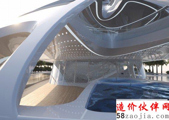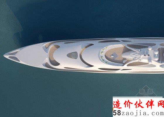 设计的上部结构是由一个弯曲的形状连接不同的甲板。这样的设计概念性的语言缩减了,并应用了一系列90米长的独特圆形游艇,同时也满足了船舶海洋过境点的技术要求。“作为一个动态的物体移动在动态环境中,游艇的设计,除了建筑方式的设计外,还必须与其他参数相配合,而所有这些问题在水上环境中都显得尤为困难。每一个游艇都是一个集成了水动力的工程平台,且游艇的结构,也对舒适,空间品质和安全提出了最高要求。”扎哈说道。JAZZ游艇(爵士游艇),五个中排在最前面的这个。有一个锋利的固体机头和变得开放的后部,其他的四艘船体将被定制,以满足主人的需求。