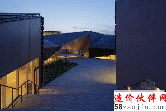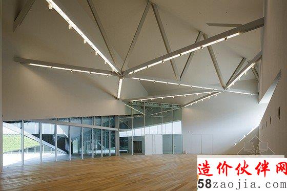 这座醒目的博物馆仿照河流的流动形态和山地景观,并且运用不同的材质和纹理,还运用了绿色的太阳能电池板作为墙壁。建筑还设置了几何窗户,可以欣赏到自然景观,享受自然光线。建筑的高高的天花板,让人们感觉到自然的无拘无束,整个博物馆的家具都采用的自然木材,建筑外观则是全白的皮肤,显得纯净无比,与周围的自然融为一体。