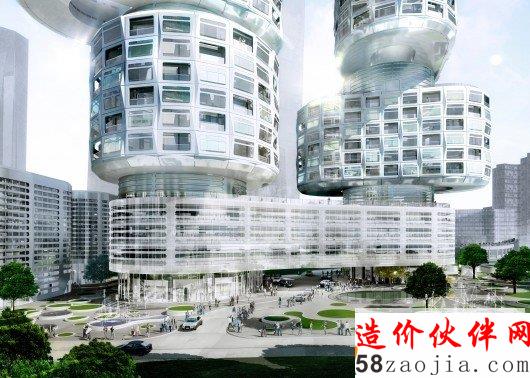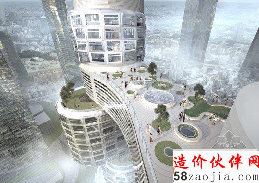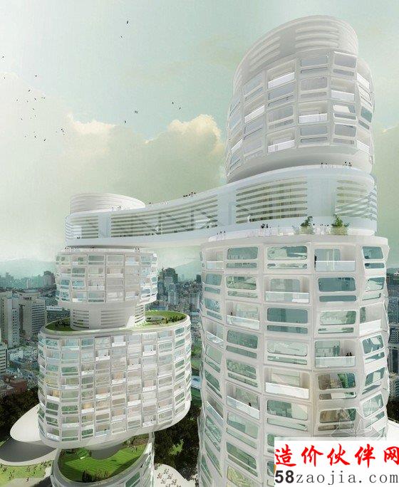 这个项目上面每一个圆柱卷都是精心设计的,与相邻的龙山公园和遥远的水系遥相呼应。这些集群都包括三个组件:一个基地,一套堆叠卷和一个空中桥梁,每个集群都配有一个花园和中庭,可以共享一些公共设施,并且,人们站在这个开放的花园内,可以俯瞰整个首尔,享受它带来的视觉感受和洁净的空气享受。该建筑一共有30层,其中,6-8层为主要的住宅区,住宅区外是用于汽车、航空航天和海洋产业的办公区,之外还有包括室内健身室、休闲娱乐中心、贵宾室、游泳池、水疗中心以及网吧。