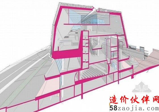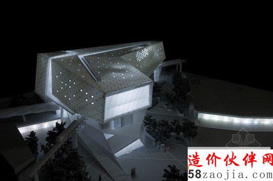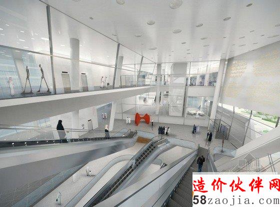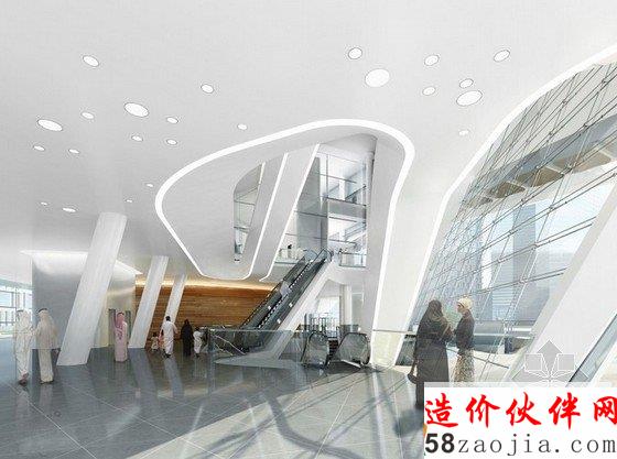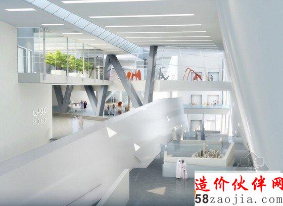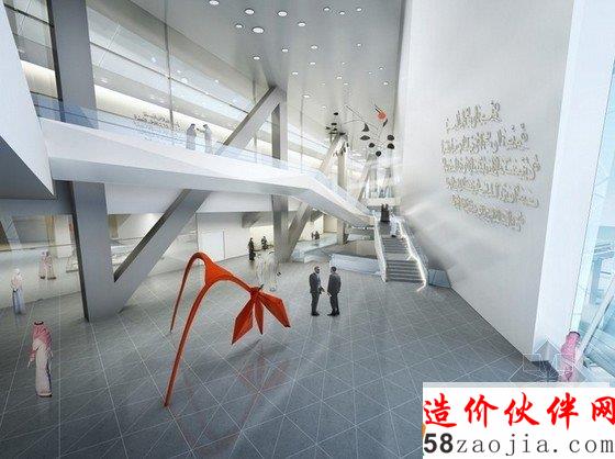 在这里,FXFOWLEJian建筑设计师正在建设一个新的公共建筑——博物馆,该博物馆旨在探索在沙特阿拉伯王国里的较大的区域发展问题和社会、经济、环境问题。该博物馆将展出一些与阿拉伯半岛上艺术和建筑的历史有关的作品。沙特阿拉伯文化博物馆可以将私人收藏展出,供市民和游客参观。建筑师在沙漠中央开发了一个大型广场,以让农业能再严峻的环境中得以发展。KAFD已经被改造成一个行人公园,连接金融区的主要建筑物。建筑物的采用用的是天然岩石和加工过的石材,通过高超的工艺铸造出人工河道。该项目包括展厅、画廊、餐厅、书店、研究和教育中心、礼堂和一些停车场在内的公共设施。建筑上部分以玻璃夹层面板作为门面,玻璃夹层的面板可以起到绝缘的保护作用,还能防风雨和热量的剧增。博物馆内采用主要内部循环系统,游客进入该地区,可以公开参观开放的地方,室内的中庭和停车场以行人天桥相连接。进入博物馆内,则可见展览厅和餐厅都被设在楼上,可以让人们在参观和用餐的同时享受登高远眺的美景。楼梯穿越博物馆内部,可以完成参观和运输的功能。椭圆形的观众席采用木材结构,可以在中庭浮动。