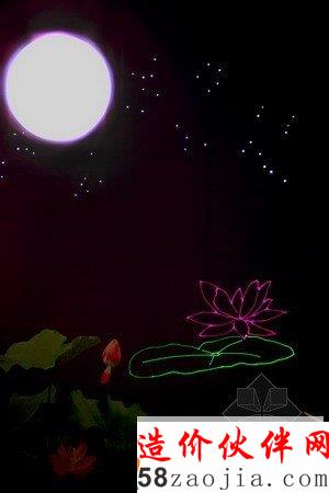 由USTech·联合空间技术室内设计师、高级照明设计师束旻带来具有强烈的中国元素作品:“荷塘月色”。她就咖啡厅角落没有通风的环境,特别在墙面上开通了一片荷塘,利用投影灯创造一轮明月,更用激光打出六十六颗星星组成的十二个星座陪伴左右,更显月色的宁静与安详,为狭窄闭塞空间增加灵动的感觉;