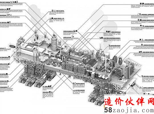 相比之下,Manuel Dominguez设计的城市有着非常大的城市规模,他提出了一个可以移动的城市,可以提供工作岗位和丰富的资源。当然,这并不是第一次提出游牧民族的城市概念。Ron Herron的移动城市是一项非常独特的设计,从20世纪60年代,已经构建了有影响力的建筑理论。Dominguez承认他的设计来自他想在同行中脱颖而出,当时他根据自己论文的要求,决定设计一个乌托邦的城市。Dominguez觉得他的设计在理论上是可行的,他可以启动世界级的机动程序和自动结构,巨大的钢架及履带来完成整个建筑。尽管这个城市有着非常大的内部结构和巨大的规模,但是他可以尽量少的影响周围的生态系统。它的机动性提出一种新方案:以鼓励植树造林的城市环境替代日常的功能机械化城市环境。这个项目在当今社会的时代背景下,还可以为大量西班牙失业公民提供工作岗位。无论从经济增速的放缓还是从人口上看,Dominguez有趣的提议似乎不那么荒谬而且很有用,最起码最初看上去是这样。