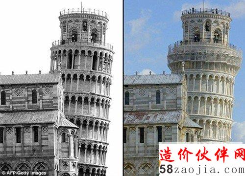结果,在120部精密仪器的帮助下,施工人员成功将斜塔倾斜角度回复到1838年时的状态。
