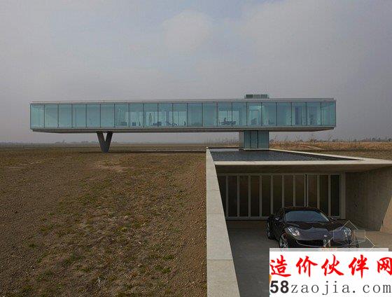 设计主旨在于创造一个简约而极具吸引力的建筑结构,达到完全自立,自己加热水资源,自己回收废物。2个堆叠的立方体构成了整个设计,一个位于地下,另一个为浮于景观之上的玻璃盒状体量。建筑的入口位于地下层,拥有停车场、储藏室、一个浴室和一个工作室。地面之上,开放式布局的生活空间,景观视野开阔,其内厨房、卧室和浴室独立分布。为了确保全年环境舒适,特别的“气候式立面”由绝缘玻璃外层和反射阳光的织物内层组成。织物可以向下移动,形成气腔,让建筑内的空气通过一个被动通风系统循环利用。此外,还特别设计了一个炉子煮热水,其电力来自屋顶太阳能板和特别建造的风车。