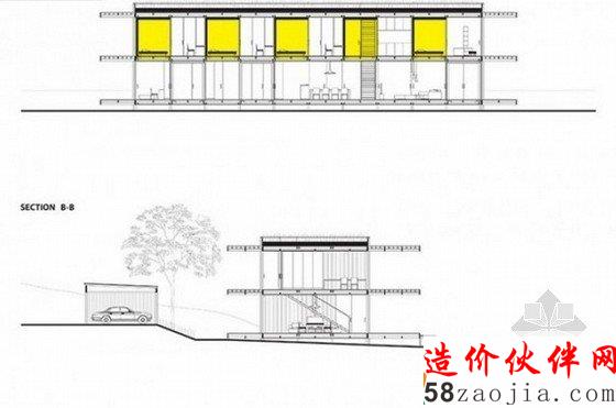 Ales Javurek以其优异的现代设计和可持续理念,击败了300名候选人。项目使用了铁制海运集装箱和木制面板,与周围的自然环境和当地气候和谐共融。建筑师表示:“我优先考虑的是保留现有的数目、草坪和包括3个平台的斜坡外形。结果,我在最高层创造了一个停车空间,用现有的数目是其和别墅分离,将集装箱度假屋置于中间层,将游泳池区域置于最低的部分。草坪被移至屋顶,提供了视野极佳的私密花园。”这个2层的建筑包括入口层的开放式客厅和上一层的私密卧室。横向的木板由细长的柱子和集装箱支撑。到了夏天,木制花棚可以起到遮挡作用,避免室内的阳光直射。葱郁的屋顶绿化,避免了空间过热。项目使用了自然通风和采光系统,保证了室内的健康气氛。到了冬天,玻璃表面有利于吸收自然热量,而屋顶绿化起到了绝缘的作用。