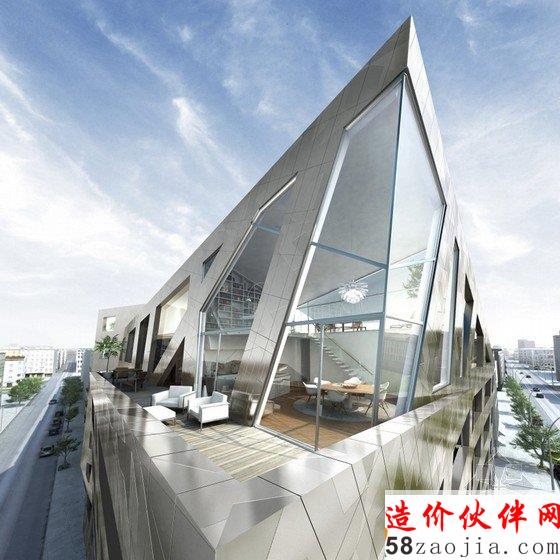覆盖金属涂层的陶瓷砖墙,组成了建筑的表皮。该方案包括73个独立的公寓单位,位于相对较小的地块角落。其零售点激活了街道平面的场地边缘区域。一座空中豪宅位于项目的最高点,以双倍高度的生活空间为特色,同时拥有一个俯览城市全景的阳台。Libeskind表示:“尽管近年来我的工作室经常被委托设计摩天大厦,但是我还是喜欢设计‘家’——人类生活的基本单位。”