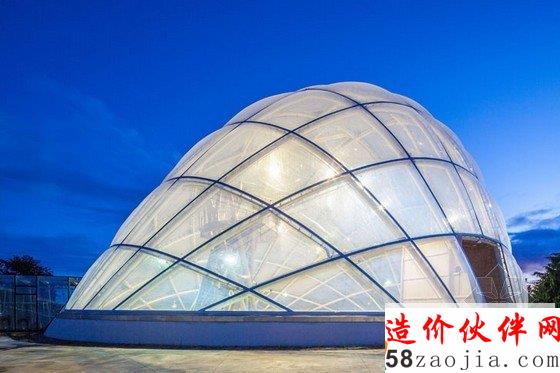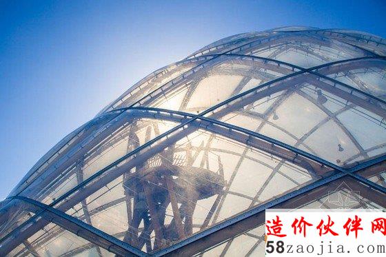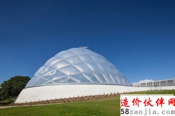 该项目的结构可以最大化室内空间、最小化表面积,以达到节能效果。10个钢铁拱向纵轴和横轴辐射,创造出一个由矩形双层ETFE箔垫填充而成的大网。面南的区域为双层或三层,可以根据压力变化调整。这些变化轮流发生,调整了垫层的透明度,最后改变了整个圆顶的外观。项目的原始设计基于节能方案和材料知识的储备。最终的形式产生于对圆顶下和其周围大气条件的计算与推测,并基于美学和节能两方面的互相影响。