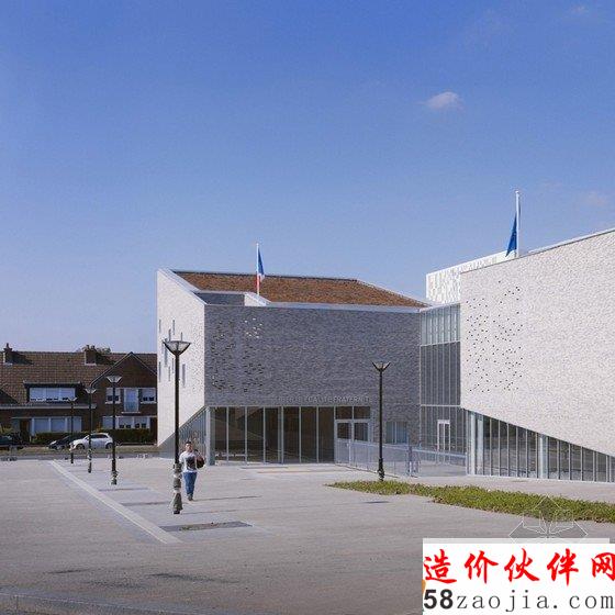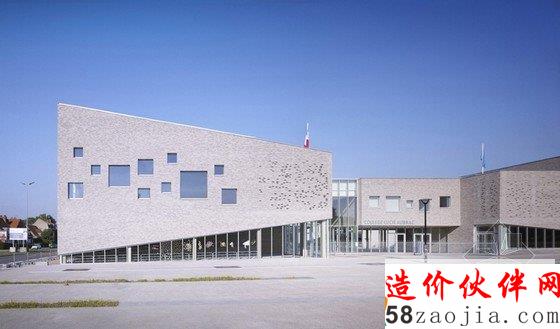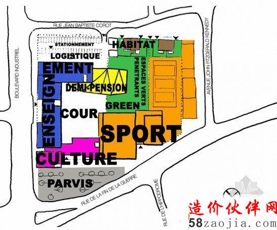 Lucie Aubrac学院是第一个达到BBC“低耗建筑”标准的二级学校。这个项目位于图尔宽市西部,处在以居住区为主的地区。因为所处位置的重要性与学校呈现的纪念性,这个新校址为城市的入口添加了一份重量。这座建筑建在了两条轴线,工业大道和Fin de la guerre街之间。
