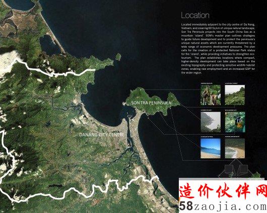六、Skidmore, Owings和Merrill LLP的山茶半岛战略规划。山茶半岛位于越南中部,延伸到中国南海。为了避免入侵野生自然区,规划高密度的多功能区。