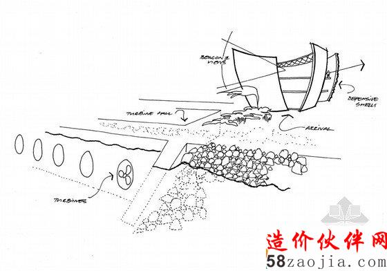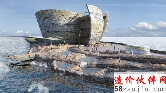 这个坚固和优雅的结构,在该地区作为灯塔。该计划将创造新的就业机会,催化未来更多的投资和发展。在泻湖的海堤,这个游客中心可以通过步行、骑车或者电动汽车到达。此建筑将包含公共画廊、咖啡馆、阶梯教室、讲堂和展览空间。为了反映该地区的渔业遗产,建筑的外形是一个牡蛎,由一系列重叠的结构雕刻成贝壳。外墙是高度变形的混凝土和落地玻璃,内墙则是反光浅色图层发射光线。高大的窗户提供广阔的观点在海湾对面,而弯曲的内部墙壁对比外表面反射。客人允许访问涡轮大厅,而螺旋桨可以从底层画廊通过一个玻璃面板看到。设计师仔细考虑了整体规模、建筑面积和视觉印象间的平衡。三层楼高的底层有阶梯教室,教育设施。屋顶的用来提供一个自然生态基础野生动物栖息和一个花园。建筑所有能源自给自足,屋顶的太阳能电池板、雨水将回收都可以减少消费。“在斯旺西湾潮汐泻湖”定于2018年开放。