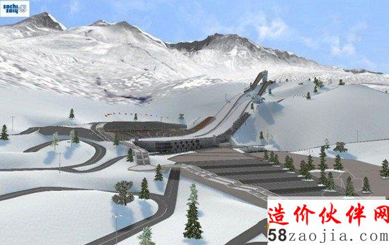 俄罗斯国家跳台滑雪中心位于ESTO萨多克的Aibga岭北坡村。国际专家为了使跳台滑雪设施与周围景观协调,并从侧面更好地保护运动员,因此选了两脊交界处位置。比赛器材是由最新的奥运会的K-95和K-125滑雪跳跃做成,会场内部也将包括多达200张床,有平面的体育设施,滑雪道和运动员训练的K-72 K-45和K-25训练设施和山丘、酒店等。
