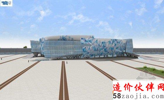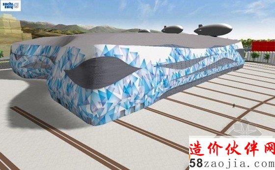 冰山滑冰宫构成了2014年索契奥运会的核心部分,场地坐落于位于沿海集群的心脏“奥林匹克公园”内,两个楼层含12000个座位,多功能的场馆已经成功地举办了许多大型活动。场馆外部的标记和配色方案使用蓝色色调,同时周围的山脉和黑海的波的剪影轮廓在结构形式中反映出来。场馆设计灵活,只需要两小时在花样滑冰和短道速滑配置之间切换。赛事结束后,竞技场的训练场将被运送到斯塔夫罗波尔,提供给内陆城市一个高品质的设施。